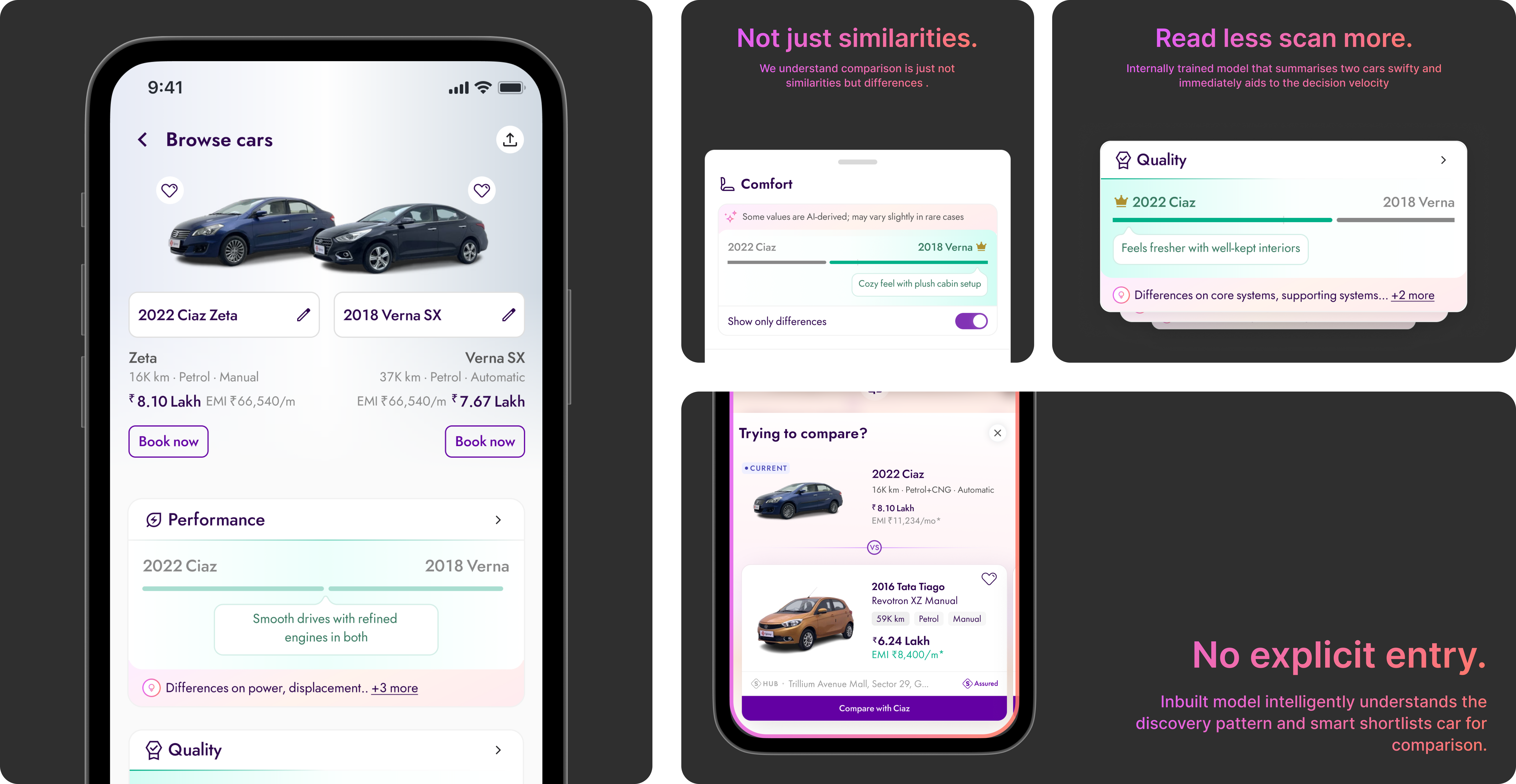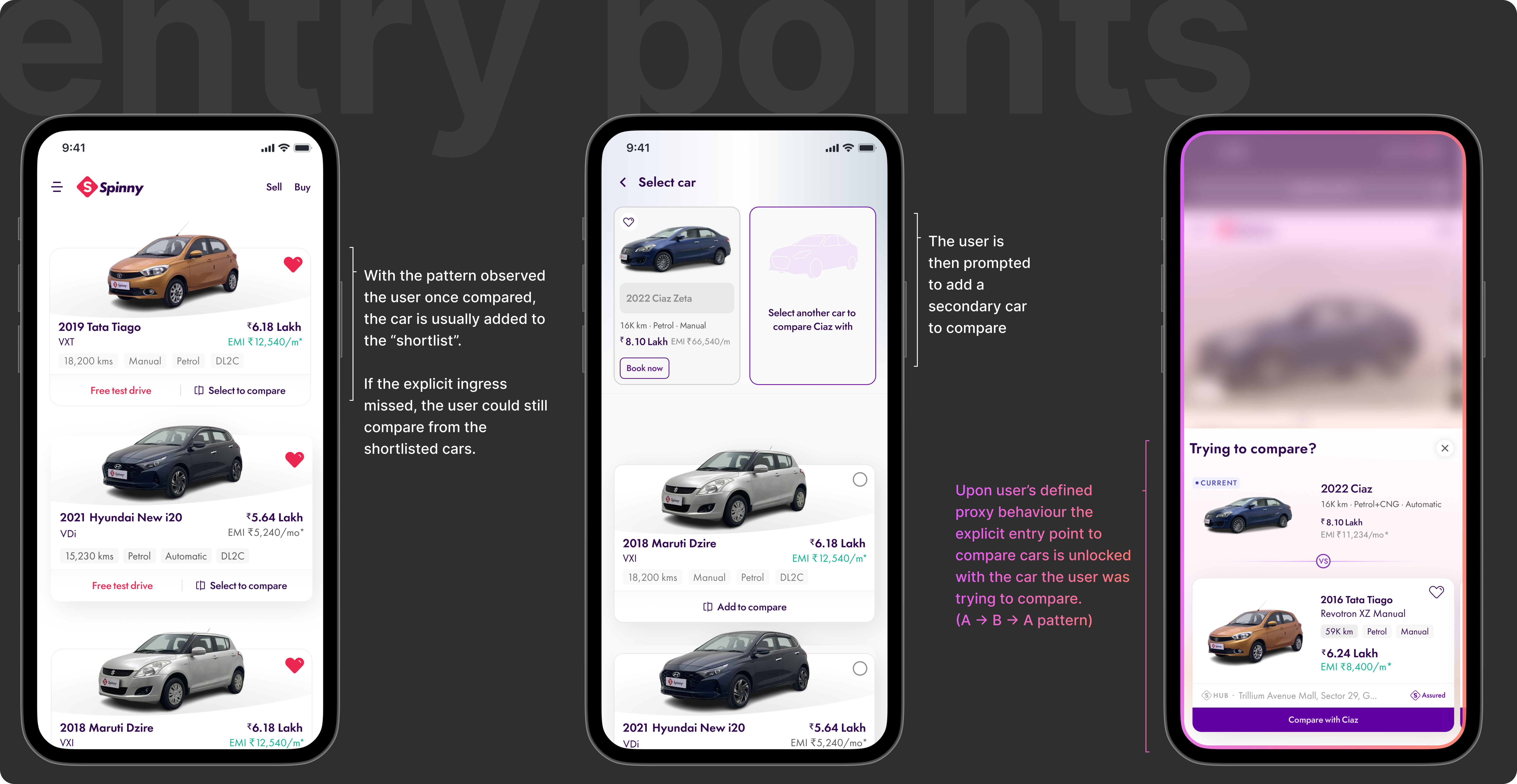 Users comparing cars on Spinny were making a decision the product couldn't see. They bounced between listings, returned to the same cars repeatedly, managed their own tabs. The data had the signal. The product had nothing built for it.